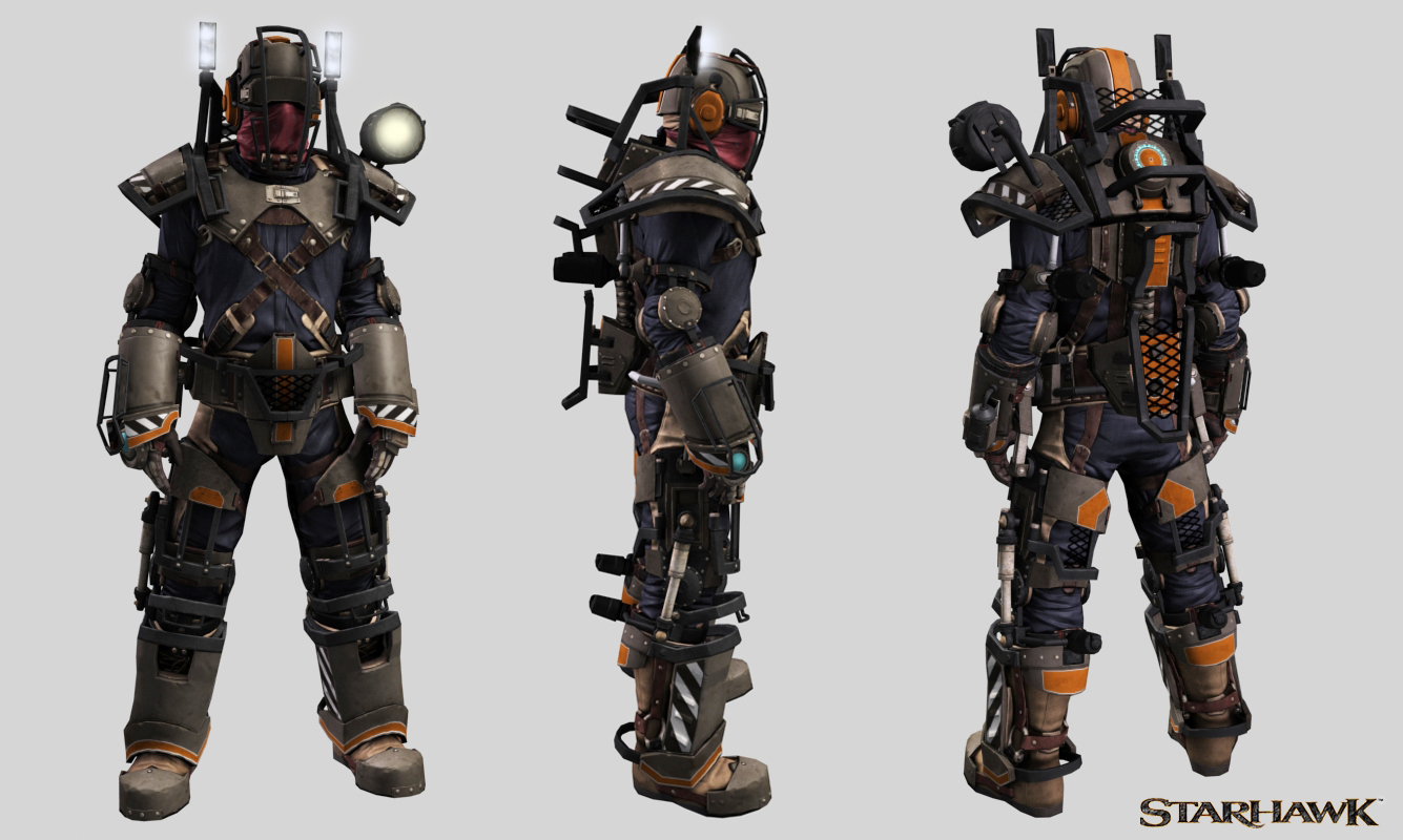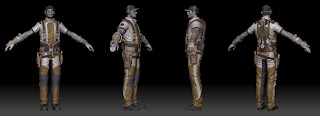 These are a couple Heavy armor set game meshes for the Rifters that I designed and modeled. I wanted them to look like they were used for mining and construction work first and battle second. The bottom one I used a duster coat for inspiration to give it a more western feel.
